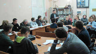 31 березня члени Студентського наукового товариства фізичного факультету відвідали кафедру фізики Харківського національного униіверситету міського господарства ім. О.М.Бекетова. Кафедру очолює випускник факультету, відомий дослідник та викладач, доктор фізико-математичних наук, професор Олександр Матвійович Петченко. Під його безпосереднім керівництвом студенти виконали серію лабораторних робіт з курсу механіки, в тому числі оригінальне учбове дослідження коефіцієнтів відтворення відносної швидкості при пружному зіткненні сталевих куль та виміряли тривалість їх зіткнення. Велике враження справила досконалість виготовлення лабораторних стендів та методичне навантаження робіт практикуму. Професор Петченко розповів багато цікавого та корисного із непересічного власного досвіду навчання, наукової праці та викладацької роботи. |